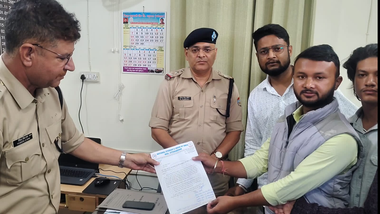 एनएसयूआई के जिलाध्यक्ष राजेश भंडारी के नेतृत्व में एक प्रतिनिधि मंडल ने सीओ सदर त्रिवेंद्र सिंह राणा से मुलाकात की। इस मौके पर उन्होंने कहा कि बीते 15 सितंबर को एक छात्र अपनी स्कूटी पर सड़क किनारे बैठक था। इस दौरान एक सरकारी वाहन वहां से गुजर रहा था। पुलिस के वाहन से एक पुलिस कर्मी उतरा और स्कूटी पर बैठे छात्र के साथ अभद्रता करने लगा। इस दौरान पुलिस कर्मी ने छात्र पर थप्पड़ जड़ दिया। आरोप लगाया कि पुलिस कर्मी ने गाली-गलौज करते हुए जान से मारने की धमकी दी। नगर पालिका पौड़ी के युवा सभासद गौरव सागर ने बताया कि घटना के बाद स्कूटी को चौपहिया वाहन दिखाकर चालान किया गया।