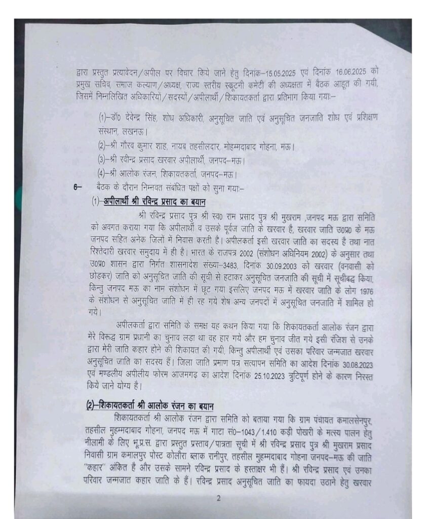 ..ग्राम प्रधानी के लिए ग्राम पंचायत कमालसेनपुर कोलौरा के रविंद्र ने बदल दी जाति, सवाल उठा जाति का प्रमाण पत्र बलहीन हुआ साबित . कार्यवाही में जिला पंचायत राज अधिकारी रविन्द्र को दे रहे संरक्ष्ण