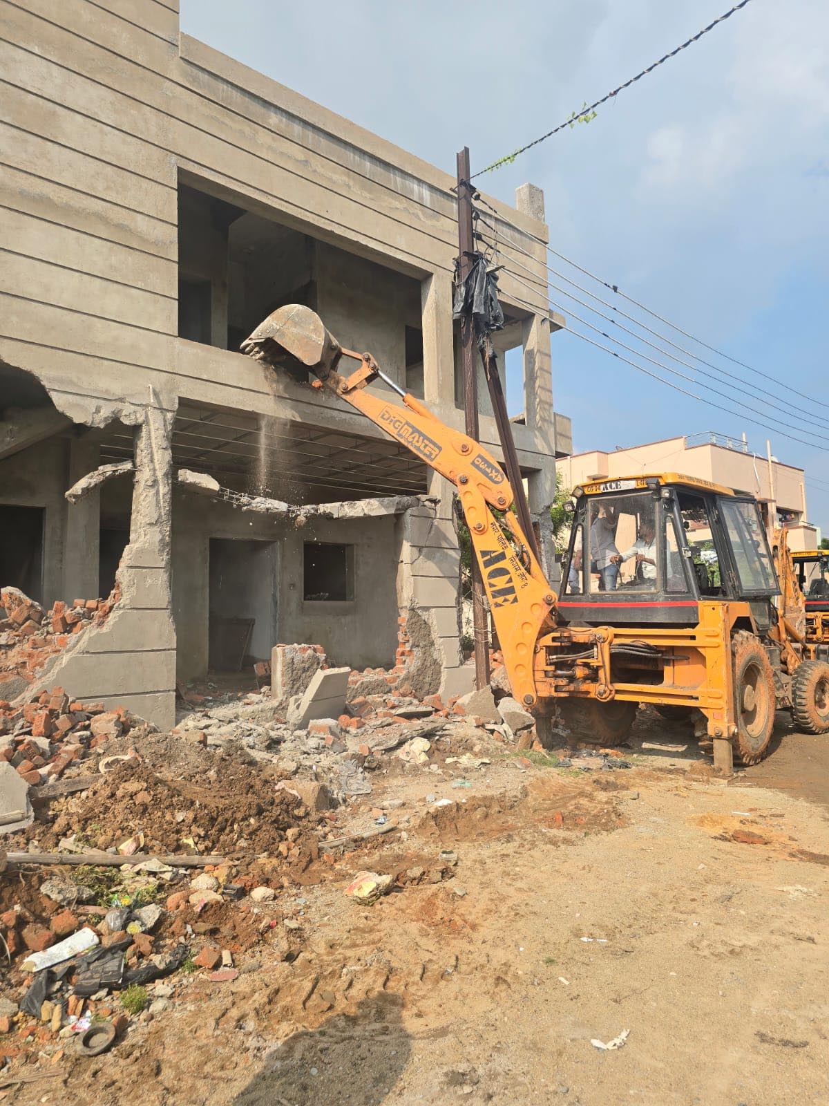 नगर पालिक निगम रायपुर के आयुक्त विश्वदीप के निर्देश पर नगर निगम जोन 8 नगर निवेश विभाग ने आज रविवार काे जोन 8 अंतर्गत शहीद भगत सिंह वार्ड क्रमांक 21 क्षेत्र के टाटीबंध क्षेत्र में स्वीकृति के विपरीत लगभग 1746 वर्गफुट पर किये गए अवैध निर्माण को बुलडोजर से ताेड़कर हटाए जाने की कार्रवाई की गयी।