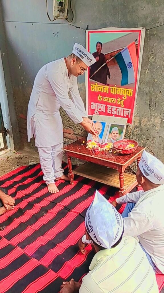 आज आप ज़िला कार्यालय हकीकतपुरा मऊ में सोनम वांगचुक को न्याय देने हेतु एक दिवसीय भूख हड़ताल किया गया*