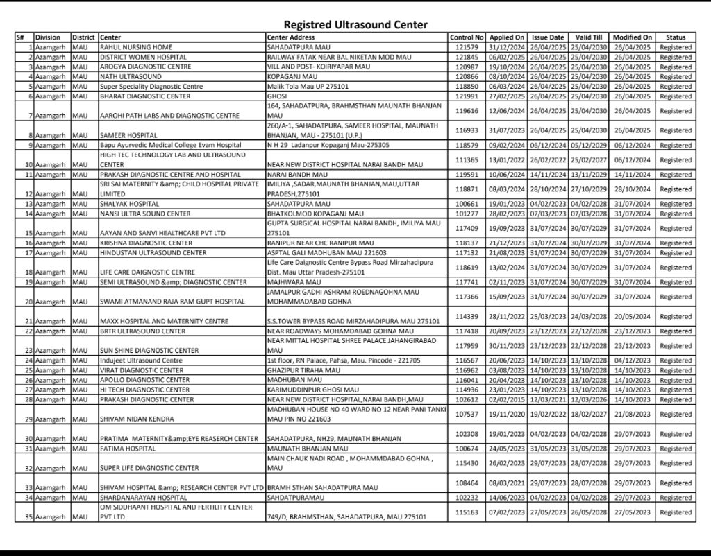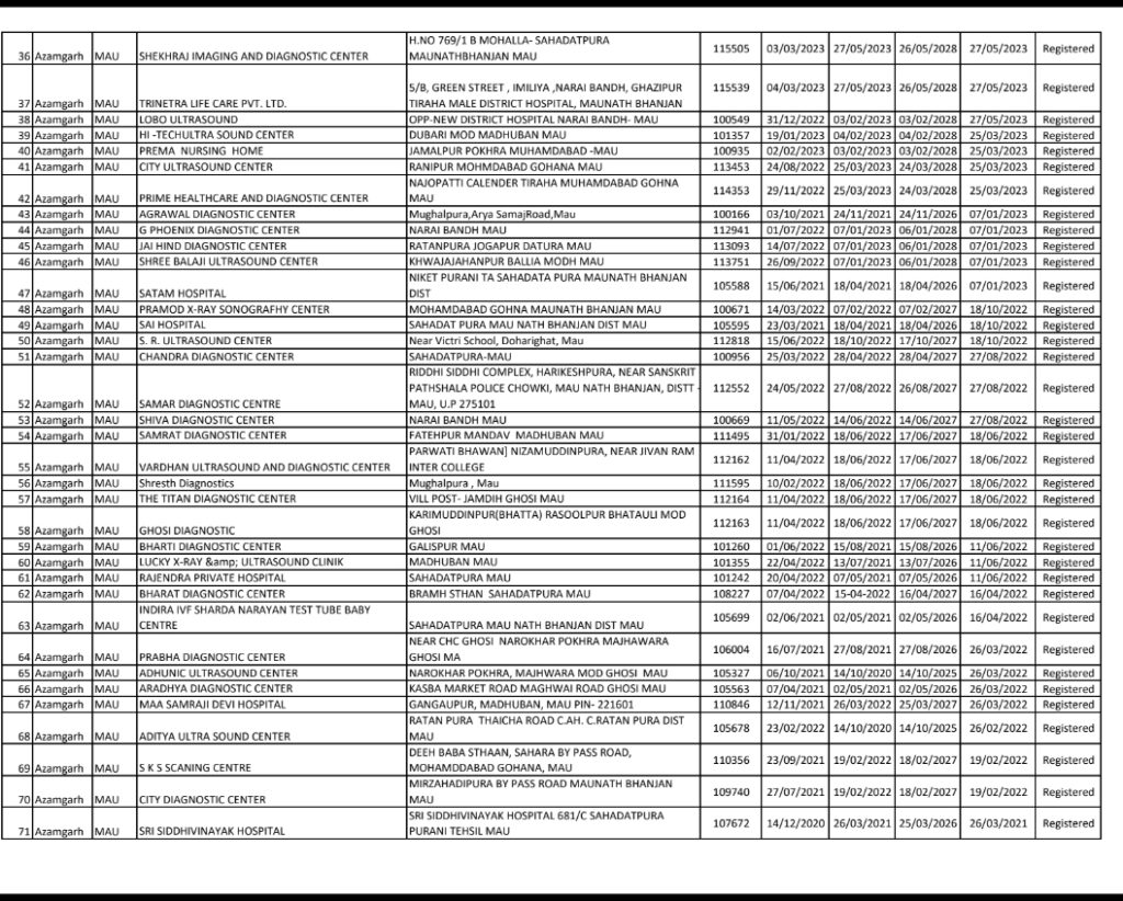 सीएमओ की सूची मे वैध अल्ट्रासाउंड सेंटरो के रेडीयोलॉजीस्ट का नाम नहीं