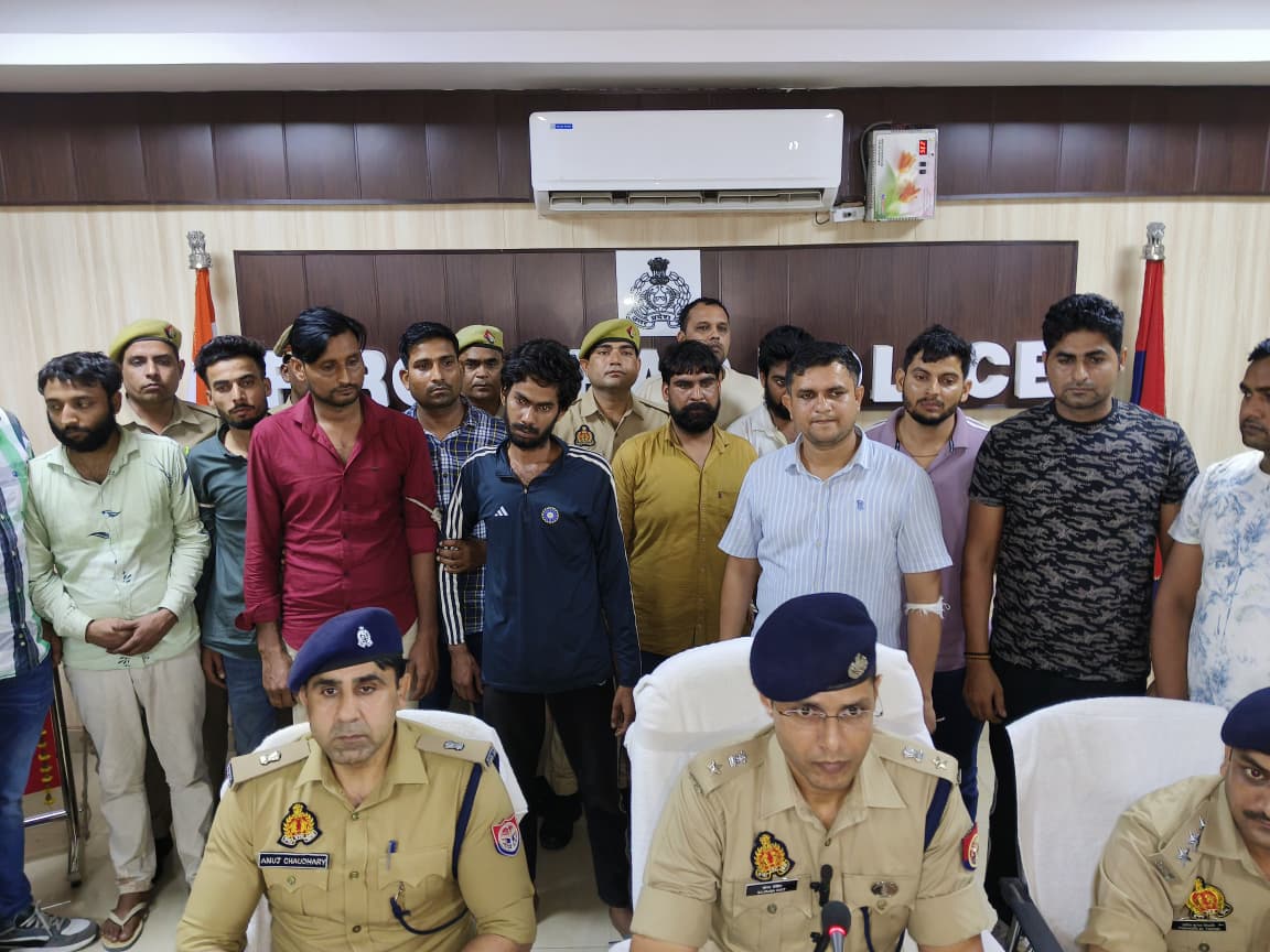 फिरोजाबाद। जनपद के चार थानों की पुलिस ने एसओजी टीम ने छह शातिर लुटेरों को गिरफ्तार किया है। गिरफ्तार लुटेरों ने कैश कंपनी की गाड़ी के चालक के सिर पर प्रहार कर उसे बंधक बनाकर लूट की थी। पुलिस ने इनके कब्जे से एक करोड़ से अधिक की धनराशि, गाड़िया, मोबाइल, असलाह आदि बरामद किया है।