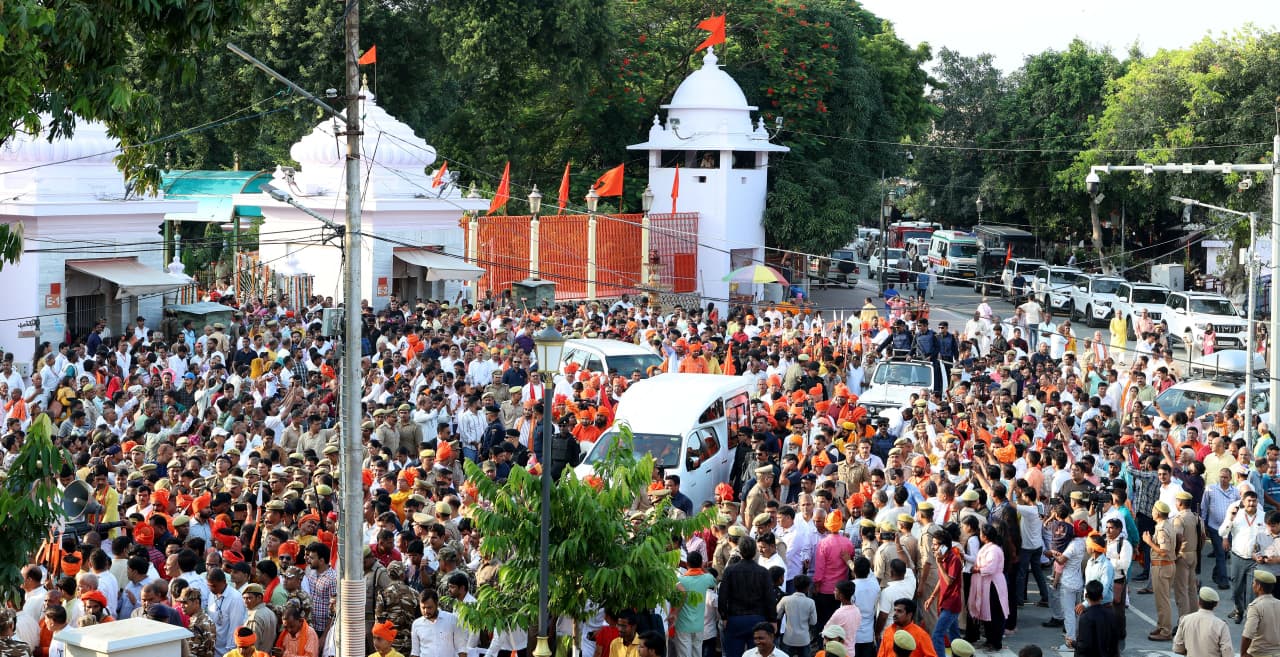 गोरखपुर। सत्य, न्याय और धर्म की विजय प्रतिष्ठा के पावन महापर्व विजयदशमी के अवसर पर गुरुवार शाम गोरखनाथ मंदिर से गोरक्षपीठाधीश्वर की पारंपरिक विजय शोभायात्रा आस्था के उल्लास, उमंग-तरंग की लहरों पर सवार होकर निकली। शोभायात्रा के रास्ते में सर्वसमाज की तरफ से हुई अगवानी गोरक्षपीठ के मार्गदर्शन में सामाजिक ताने-बाने की मजबूती का संदेश दे रही थी।